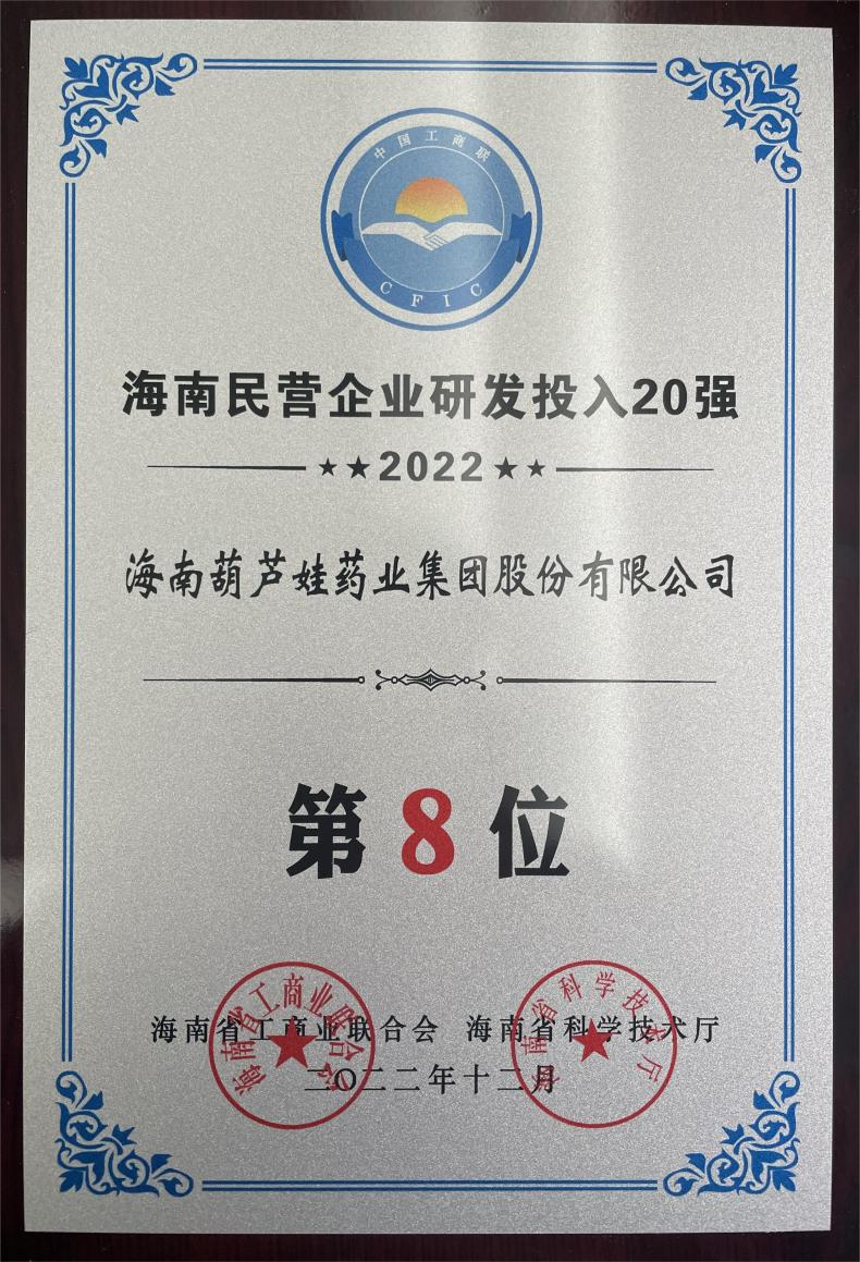 12月23日,2022海南民营企业50强和研发投入20强发布会在海口举行。会上发布了“2022海南民营企业50强”“2022海南民营企业研发投入20强”榜单和分析报告。富易堂药业再次荣登两榜,在海南民营企业50强榜单中位列第25位,较去年上升8位,这也是公司连续三年登榜;在海南民营企业研发投入20强中位列第8位,较去年上升7位。