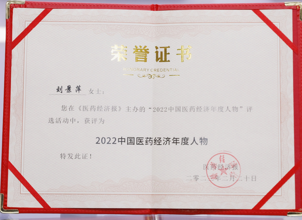 富易堂药业集团董事长刘景萍当选“2022中国医药经济年度人物”
