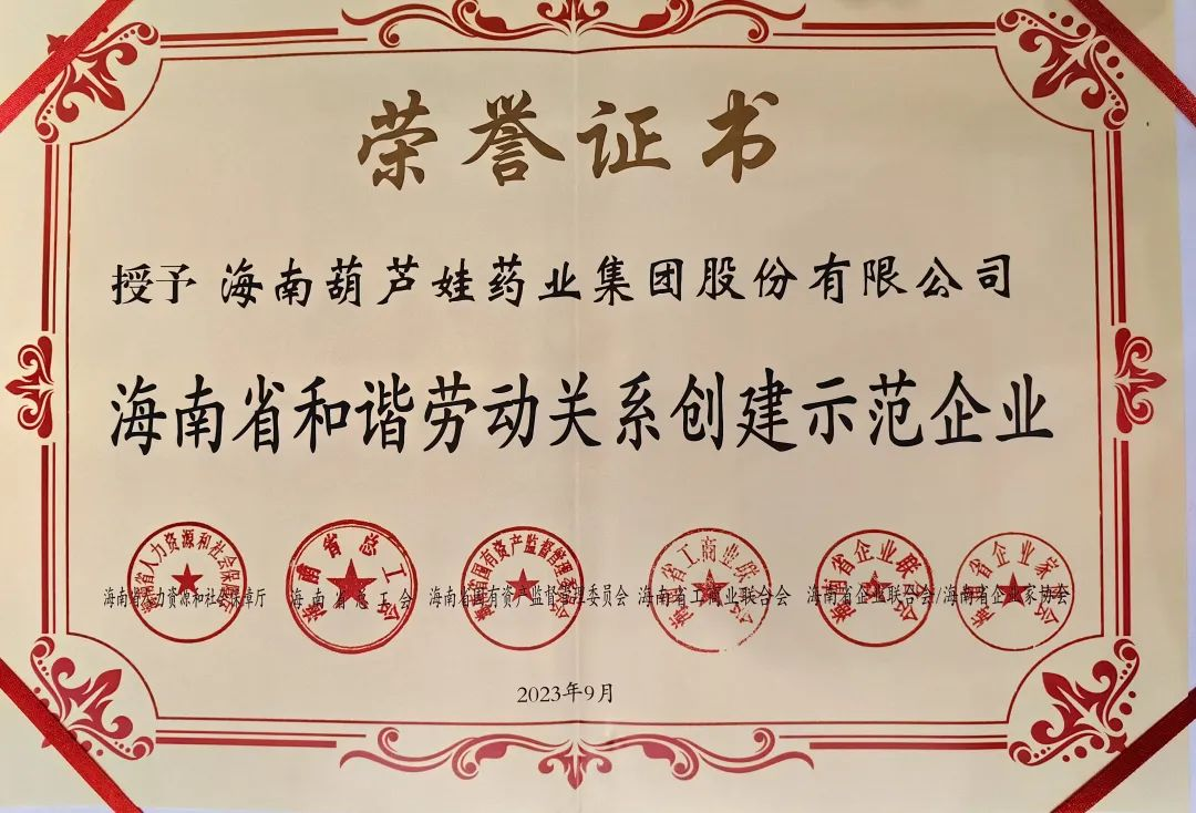 富易堂药业集团获评“海南省和谐劳动关系创建示范企业”